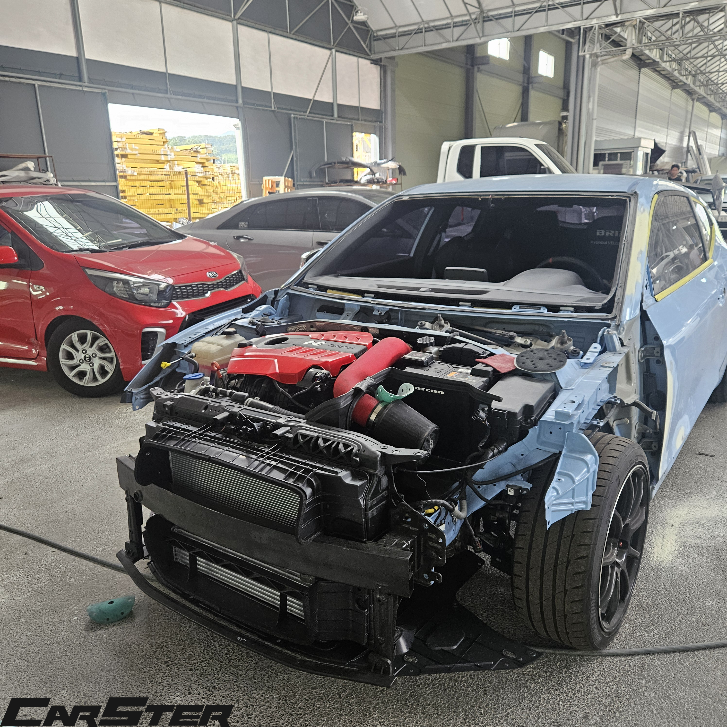 엔진 및 에어백까지 전개된 큰 사고임에도 깔끔하게 수리 도와드렸으며 , 수리진행하며 고객님과의 1대1 피드백 및 소통, 튜닝차량or앞부분이 크게 손상된 차량이라