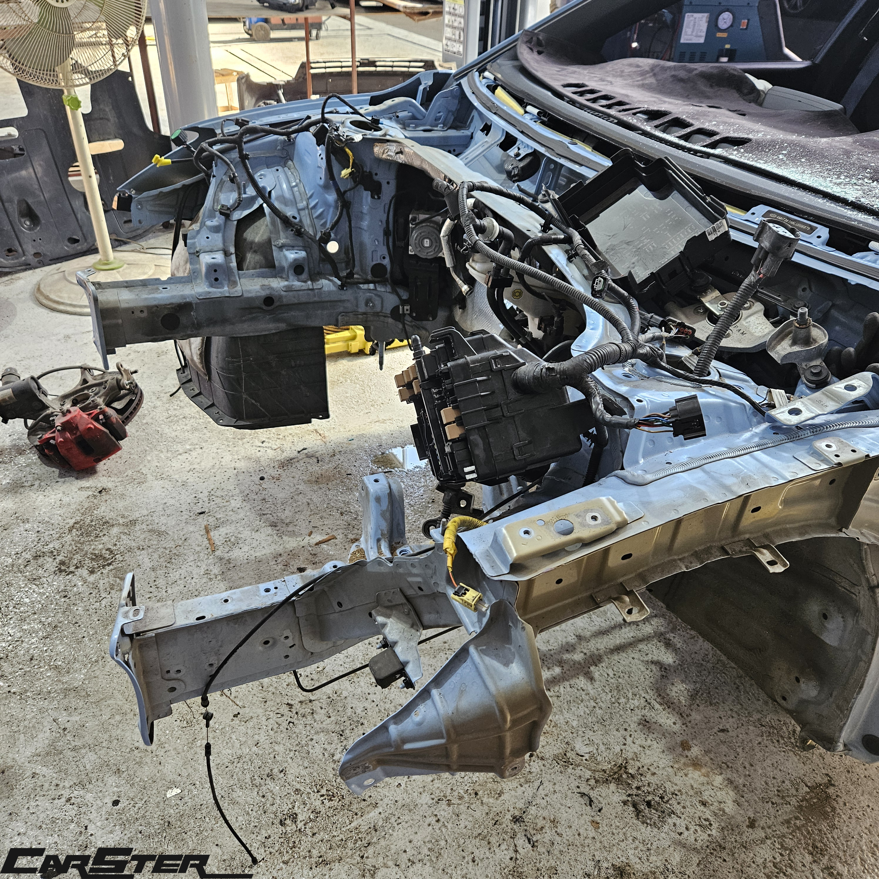 또한 , 사진에서도 보시다시피 하우스 프레임까지 타격이 있는 모습 확인 되실겁니다 . 카스터는 1급공업사 이기에 엔진탈착 및 하우스까지 모두 수리가 가능하다는 것!